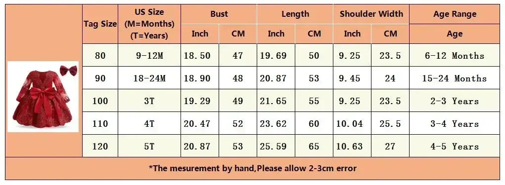 Long Sleeves Dress for Kids Girls: Red Christmas Dress for Baby Girls