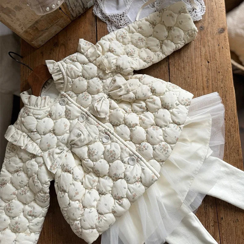 Baby Girls’ Thick Coat – Velvet Lined Floral Winter Jacket