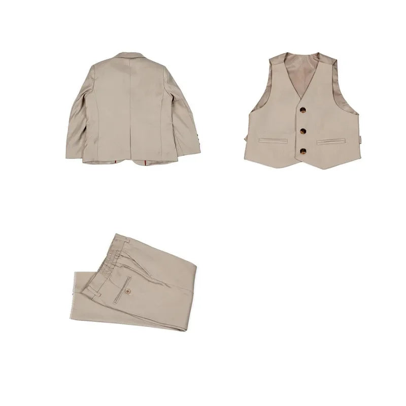 Boys’ 3-Piece Formal Suit – Khaki Coat, Vest & Pants | Wedding & Party Outfit