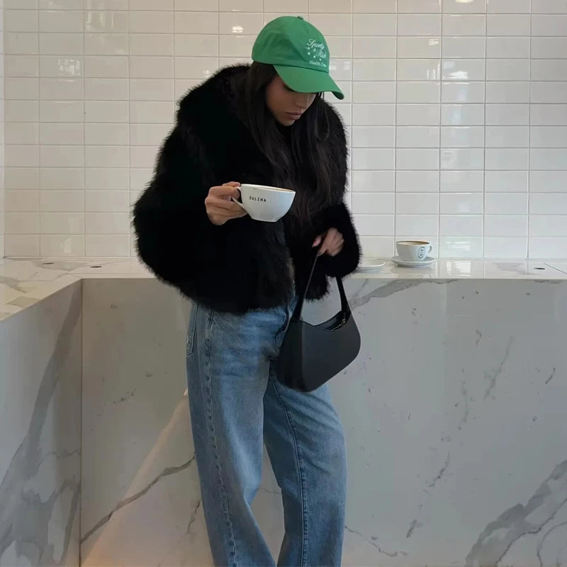 Elevate your winter wardrobe with this Cozy Black Faux Fur Outerwear, expertly designed to combine style and warmth. Crafted from high-quality faux fur, it offers a luxurious feel while keeping you comfortably insulated in chilly weather. Its sleek black finish ensures versatility, making it ideal for both casual outings and sophisticated events. This outerwear promises a fashionable statement without compromising on practicality.