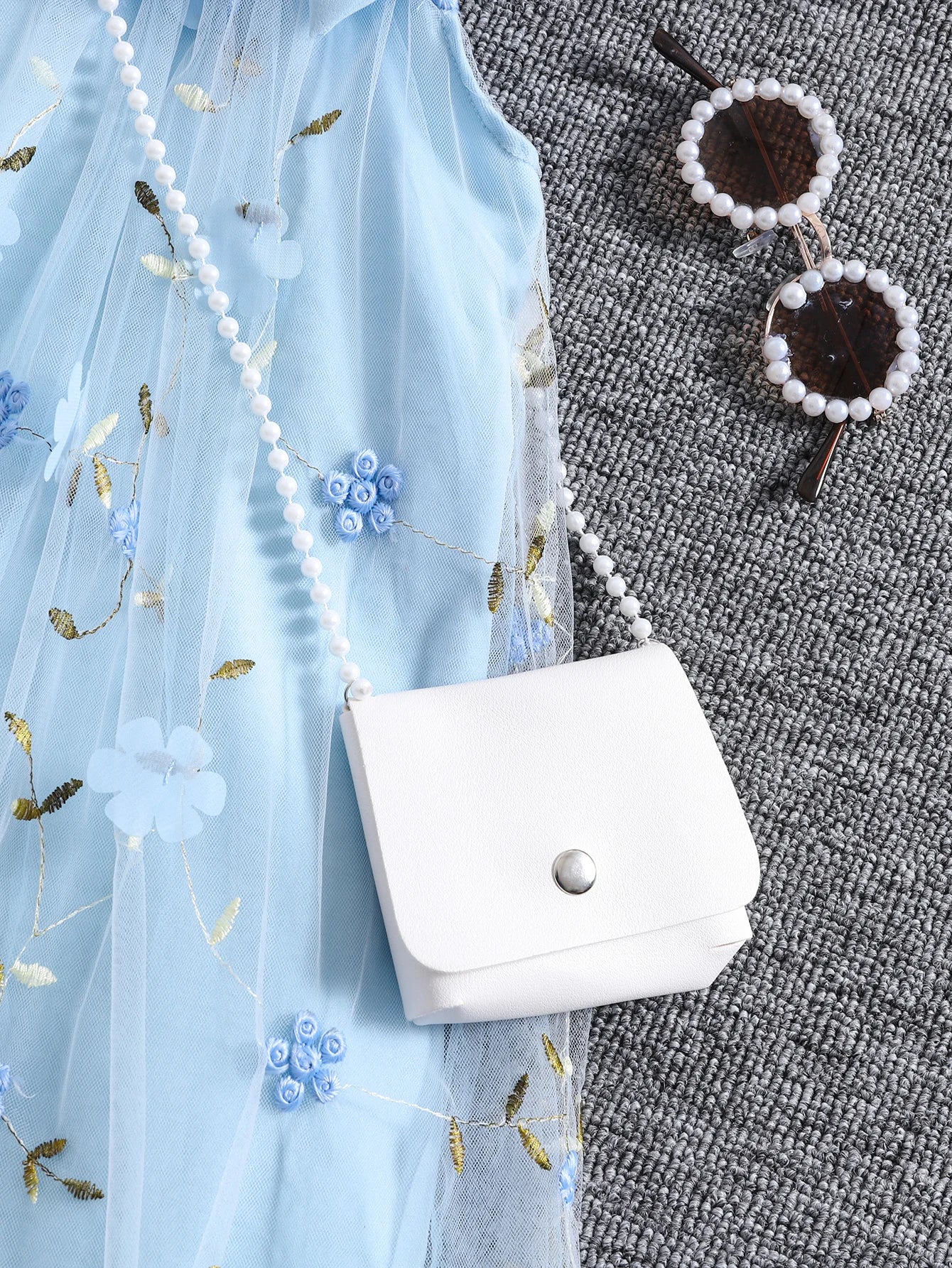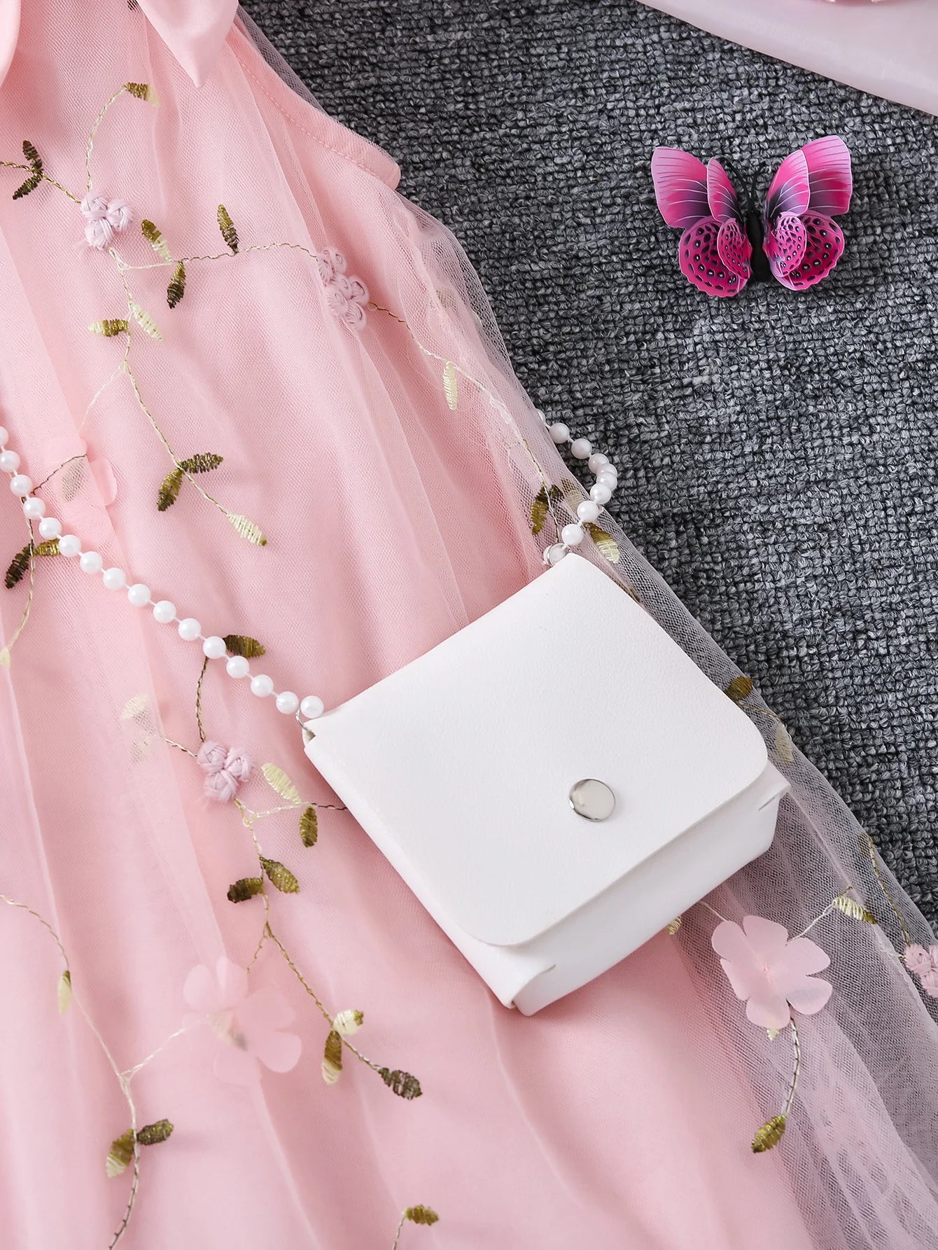 Girls' Summer Halter Dress with 3D Flowers & Bag