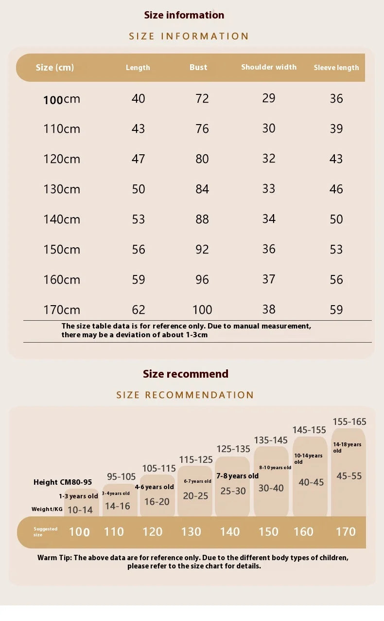 size_info: {"sizeInfoList":[{"length":{"cm":"40","inch":"15.75"},"size":"100cm","vid":-1},{"length":{"cm":"43","inch":"16.93"},"size":"110cm","vid":-2},{"length":{"cm":"47","inch":"18.50"},"size":"120cm","vid":-3},{"length":{"cm":"50","inch":"19.69"},"size":"130cm","vid":-4},{"length":{"cm":"53","inch":"20.87"},"size":"140cm","vid":-5},{"length":{"cm":"56","inch":"22.05"},"size":"150cm","vid":-6},{"length":{"cm":"59","inch":"23.23"},"size":"160cm","vid":-7},{"length":{"cm":"62","inch":"24.41"},"size":"170cm","vid":-8}]}