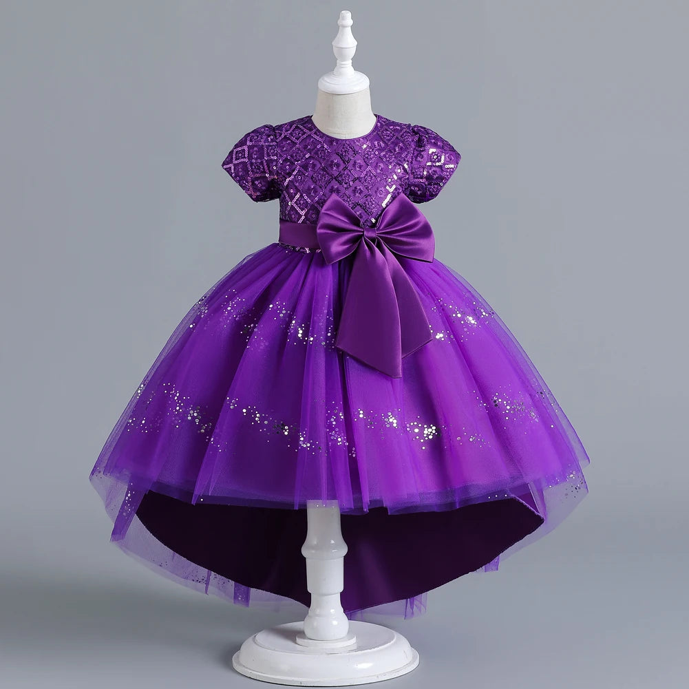 Kids’ Purple Sequin Dress – Bubble Sleeves