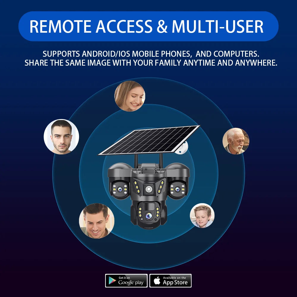 This advanced Triple Lens 15MP 4G Solar Security Camera offers comprehensive surveillance with its triple-lens setup for wide coverage and detailed imagery. Equipped with 10X optical zoom, it allows precise monitoring of distant areas without losing clarity. Solar-powered for sustainable, off-grid operation, it ensures continuous security without frequent battery changes. The integrated PIR motion detection triggers alerts upon sensing movement, enhancing responsiveness and reducing false alarms. Ideal for remote locations, this camera combines cutting-edge technology with reliable performance to safeguard your property effectively.