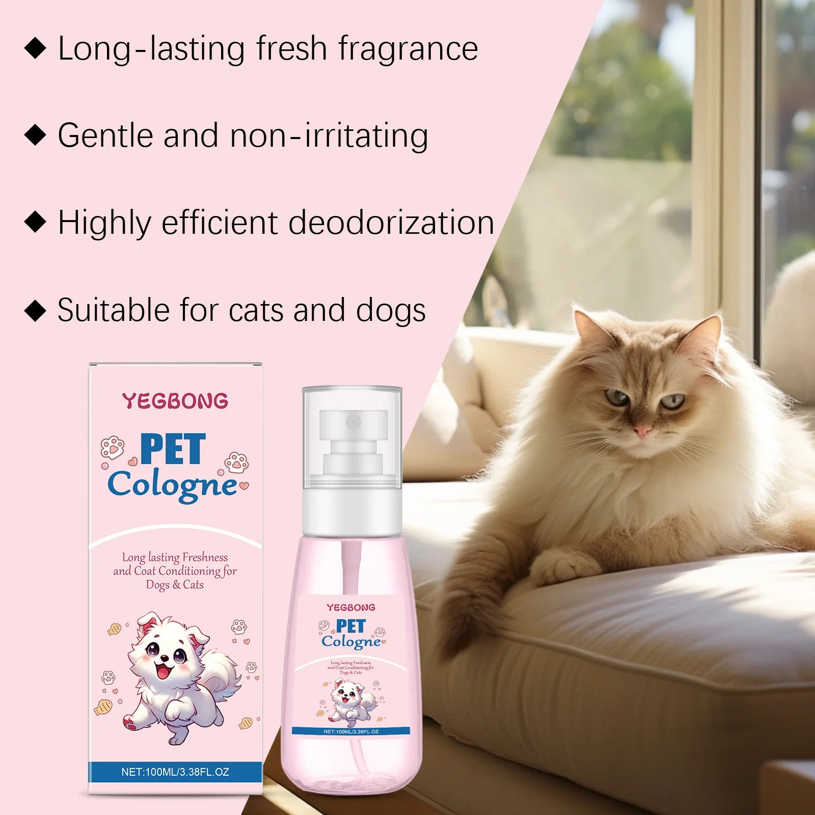 Keep your pet fresh with YEGBONG Pet Cologne. Enjoy a pleasant baby powder scent that lasts, while effectively eliminating odors for long-lasting freshness.